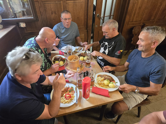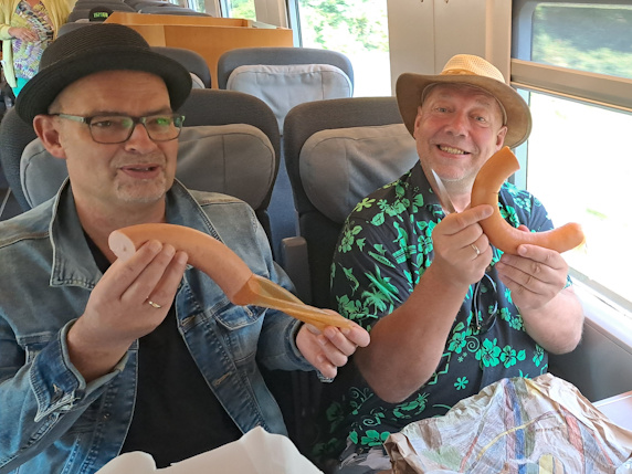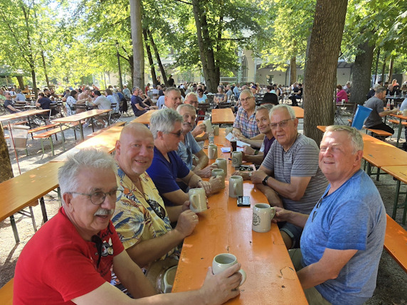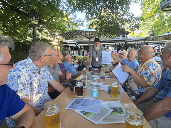 Sonntags nach dem Frühstück im Hotel ging es zum Frühschoppen. Mittags begann unsere Chaos-Bahnfahrt mit Zugausfällen und -verspätungen, abends sind wir erschöpft zu Hause angekommen. |